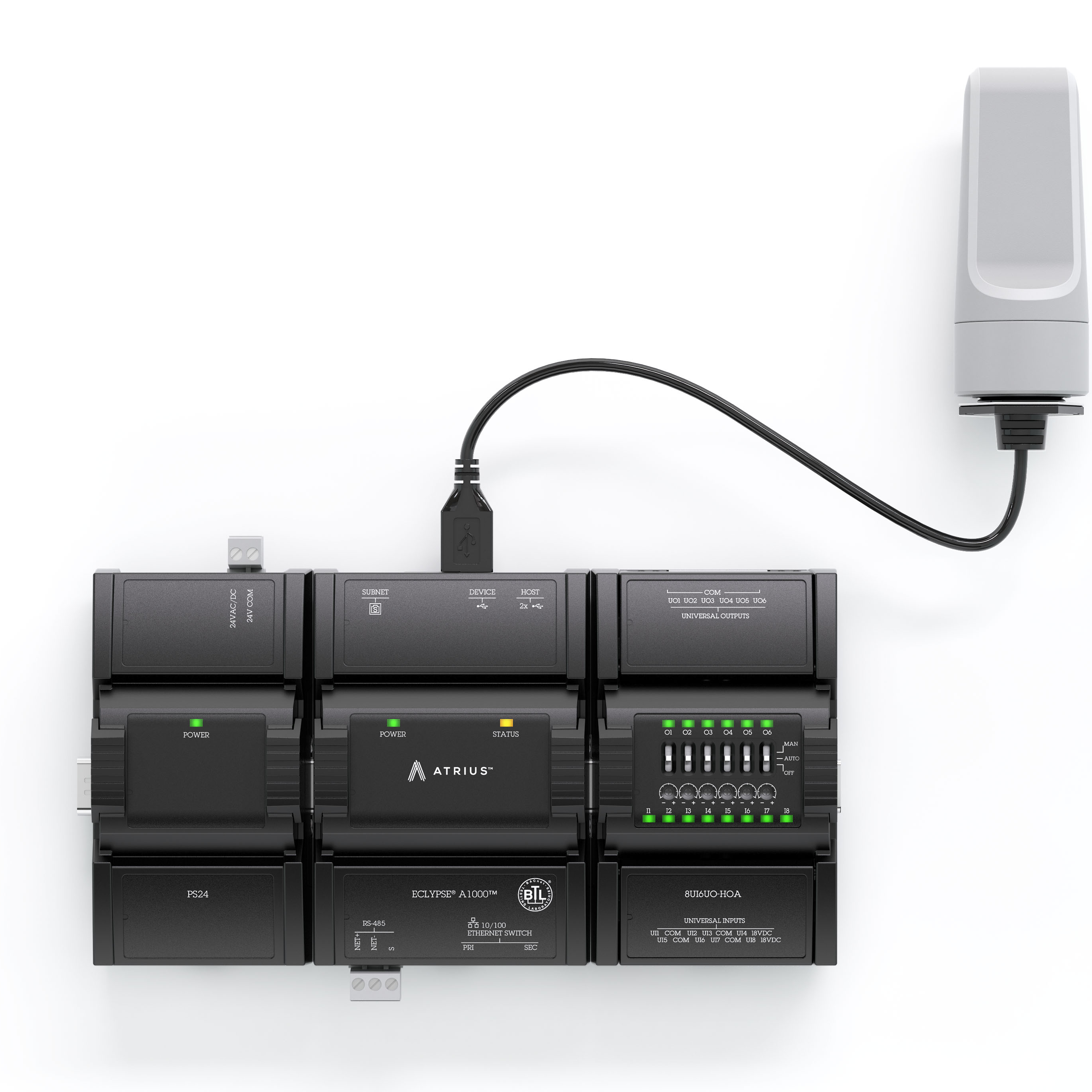 The ECLYPSE A1000™ manages and controls a network of Atrius™-Ready luminaires that are part of the Atrius Navigator Solution. This programmable device provides advanced functionality, such as customizable control logic, lighting groups configuration, Web-based design and visualization interface (ENVYSION embedded), logging, alarming, and scheduling. This BTL Listing B-BC device leverages native BACnet™/IP and WiFi to let you seamlessly integrate your lighting control system with your building management systems.